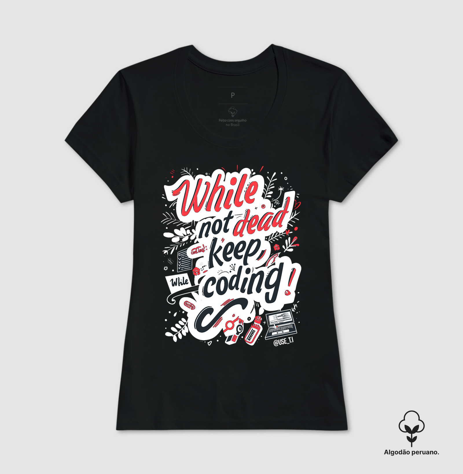 Para os entusiastas de tecnologia e programação, a camiseta "while not dead T.I" é a escolha perfeita para mostrar sua curiosidade e estilo únicos. Feita com malha peruana de qualidade da Reserva, esta camiseta oferece conforto e durabilidade para todas as aventuras do dia a dia. Ideal para quem adora o mundo da programação e tecnologia. Por que escolher a Camiseta "while not dead T.I"? Design Divertido: Estampa com a frase "while not dead T.I", perfeita para despertar o interesse pela programação e tecnologia. Conforto Superior: Fabricada com malha peruana de qualidade da Reserva, garantindo maciez, durabilidade e um caimento perfeito. Sustentabilidade: Produzida com práticas que respeitam o meio ambiente. Pronta Entrega: Receba a sua rapidamente! Cores Disponíveis: Branco, Preto, Azul Marinho. Incentive a curiosidade e o amor pela programação com estilo e conforto. Garanta a sua camiseta "while not dead T.I" agora e celebre a tecnologia de uma maneira divertida.
