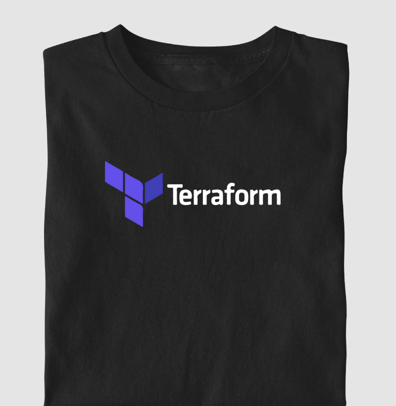 Terraform - A ferramenta essencial para quem leva a infraestrutura como código a sério. Terraform facilita a criação, gerenciamento e automação de infraestruturas em nuvem com controle e eficiência, sendo amplamente usado por profissionais que valorizam escalabilidade e organização. Nossa peça com o logo do Terraform é uma homenagem aos especialistas em DevOps e cloud que transformam ambientes com scripts e automação, criando soluções robustas e repetíveis. Feita com tecido premium, essa peça representa o compromisso com a inovação e o controle, marcas da infraestrutura moderna. Vista Terraform e demonstre seu domínio em automação e gestão de ambientes escaláveis.